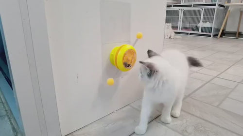 The toy features a built-in catnip feature, with three high-content catnip balls placed in the transparent top section. As the toy rotates, the mint balls jump irregularly, enticing cats to play and adding extra excitement to the experience.
